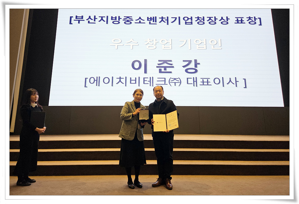 동의대 창업보육센터 입주기업인 에이치비테크(주)(대표이사 이준강)도 뛰어난 기술 경쟁력과 안정적인 사업 운영 성과를 인정받아 부산지방중소벤처기업청장상을 수상했다.